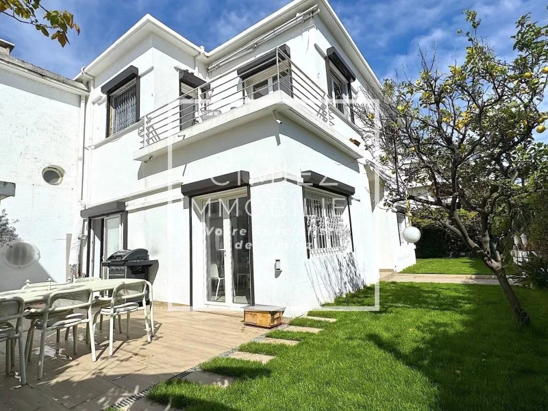 NICE COEUR CIMIEZ : PRODUIT RARE, dans un lotissement calme en plein coeur du quartier de Cimiez, maison familiale de 130m² habitable et discrètement jumelée par les angles arrières. Au rez-de-chaussée, vous trouverez un double salon salle à manger avec portes fenêtres sur l’extérieur, une cuisine indépendante et WC invités. Au 1er étage, une chambre principale avec salle de bain attenante, deux autres chambres avec terrasse communicante ainsi qu’une salle d’eau supplémentaire pour compléter l’espace nuit. À l’extérieur, cette maison dispose d’une terrasse de 40m2 attenante à la cuisine et la salle à manger. Une dépendance de 8m2 complète le lot, pouvant servir de buanderie, espace de rangement, outillage jardin etc. De plus, il y a la possibilité d’implanter une piscine. Enfin, un grand garage fermé au sein de la résidence vient compléter ce bien. Proximité immédiate des commodités, commerces, bus et proche des écoles Bellanda, Essling, école des Arènes, collège Matisse et Stanislas.