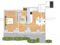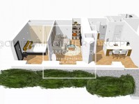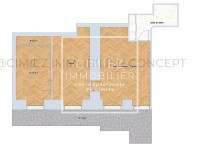 Il se compose d'un séjour avec cuisine ouverte, d'une première pièce d'environ 15 m² pouvant être aménagée en salon, d'une chambre avec rangements et d'une salle d'eau avec WC.