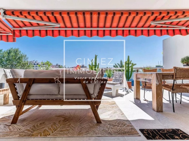 NICE CIMIEZ : Situé dans un emplacement calme du quartier et dans une copropriété luxueuse avec gardien proche de Stanislas, grand appartement de 3/4 pièces en avant-dernier étage avec magnifique terrasse exposée Sud et vue dégagée.